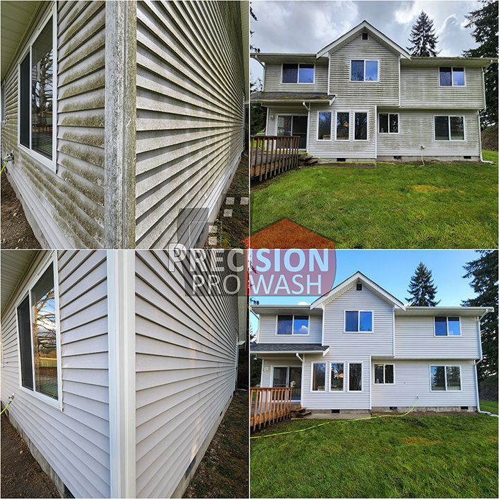 Precision Pro Wash Tacoma specializes in professional soft house washing near me that’s tailored to your home’s unique needs. We understand that each home's exteriors require specialized care to remove algae, dirt, moss, mold, and insect nests without causing damage to the materials.